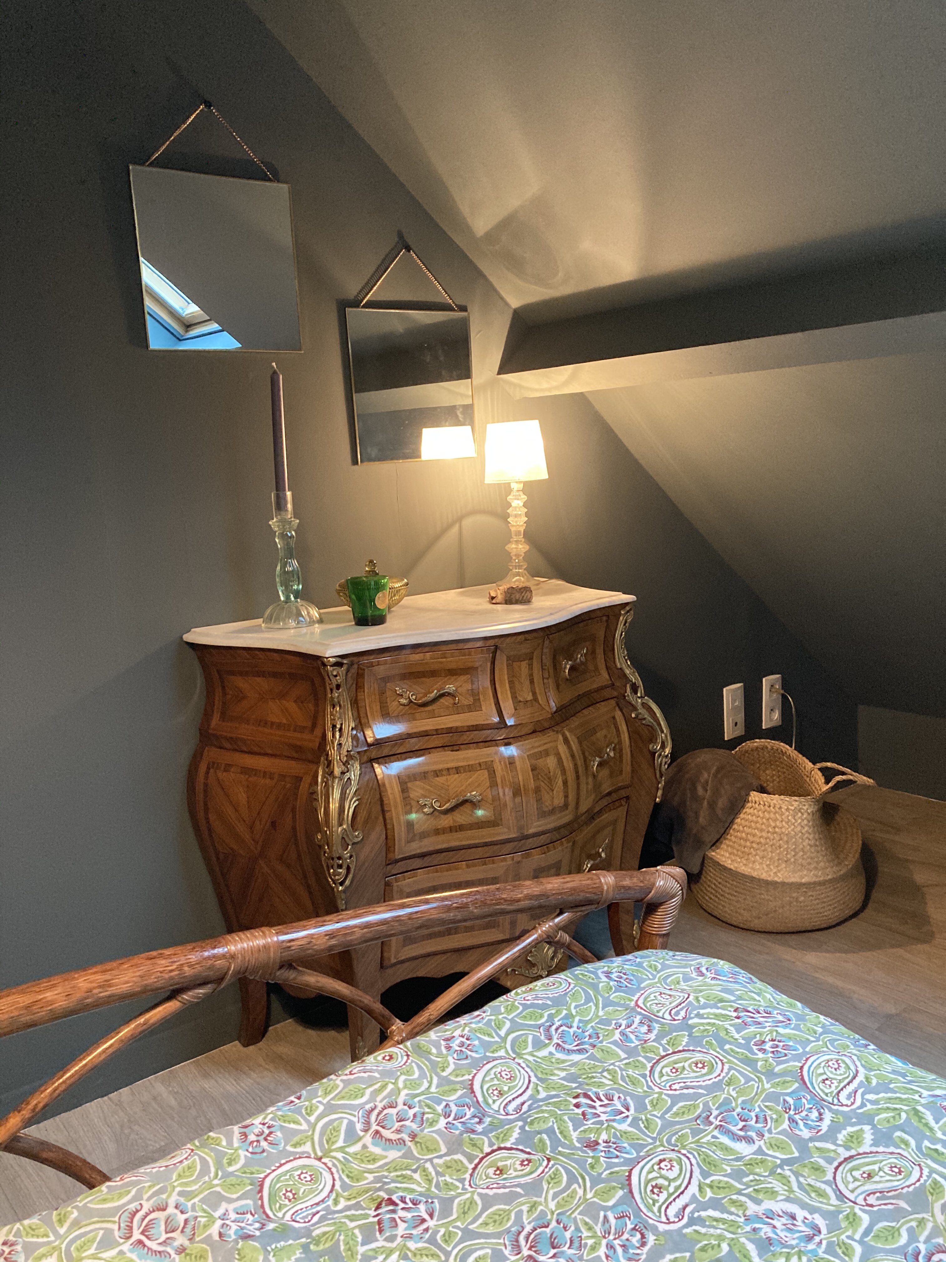 Aménagement et décoration de cette maison à destination touristique. L’objectif était de réaliser une ambiance chaleureuse et accueillante. L’utilisation de mobilier chiné apporte authenticité et caractère et nous a permis de respecter un budget serré.